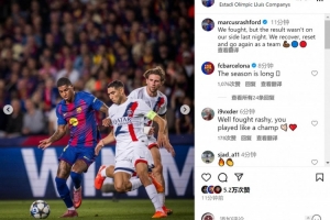 拉什福德社媒晒出比赛照片,并写道:“我们努力战斗,但昨晚的比赛结果不如我们所愿。”
