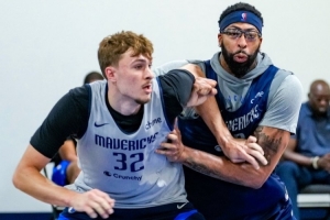 体育资讯10月8日讯 今天,独行侠官方晒出了球队训练照。其中,弗拉格和安东尼-戴维斯激烈卡位。