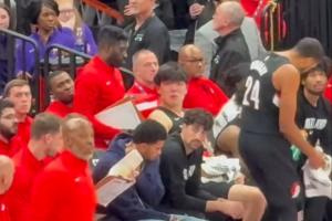 杨瀚森替补席哭了,前CBA名宿杰特上前安慰~杨瀚森眼睛有些红,也有一些撇嘴