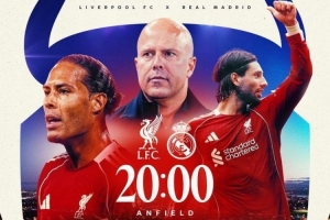 利物浦官推写道:“欧冠比赛日!在安菲尔德的聚光等下,红军将主场迎战皇家马德里!”