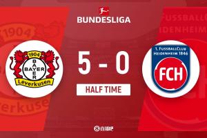 体育资讯11月08日讯 勒沃库森半场5-0领先海登海姆,对手被迫33分钟连换两人。