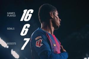 巴塞罗那官方也晒出拉什福德的数据,并且配文:16场6球7助,拉什福德势不可挡🔥