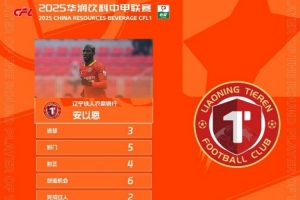 上演帽子戏法,辽宁铁人球员安以恩当选中甲第30轮最佳球员