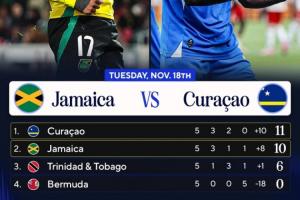 5轮过后,库拉索11分小组第一,领先小组第二牙买加1分,下轮两队将直接交手,库拉索不败即直通世界杯,比赛于北京时间11月19日9点在牙买加主场进行。两队首回合交手,库拉索主场2-0击败牙买加。