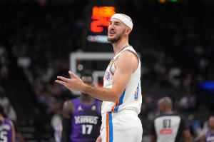 雷霆官方发布消息,卡鲁索因右手酸痛退出今日比赛。上半场卡鲁索仅出战1分42秒。