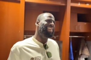 赛后,追梦接受了记者采访。谈到自己在比赛中和球迷发生口角,他说道:“他一直称我是女人,真是搞笑,他一直叫我女人。起初这只是一个不错的玩笑,但你不能一直叫我女人。我已经有四个孩子,还有一个即将出生。不过他后来安静下来了,所以事情还算圆满。”