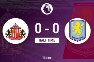 伤停补时3分钟。上半场比赛结束,桑德兰0-0阿斯顿维拉。