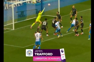 英超第3轮,曼城客战布莱顿,此役第88分钟,布莱顿右侧角球机会,小禁区线范赫克的攻门被特拉福德挡出。